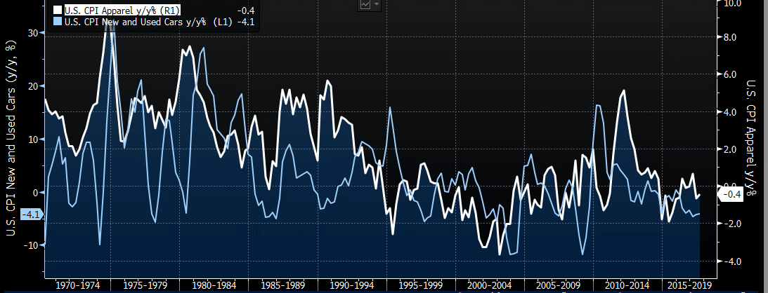 New and used auto prices have been on a decline since 2016 as the auto industry has to work off an oversupply. The glut of used cars coming to market after the increased pace of consumer leases over the last several years and the generally weaker-than-expected trends in business and consumer purchases of new autos have increased vehicle inventories and weighed on prices. There is also deflation visible in retail goods prices what appears to become a more meaningful trend. For example the Amazon’s Prime Day on July 11 caused a heavy discounting among major retailers, and that is a subcomponent of a broader disruption of the retail sector from rising e-commerce competition in the last few years.