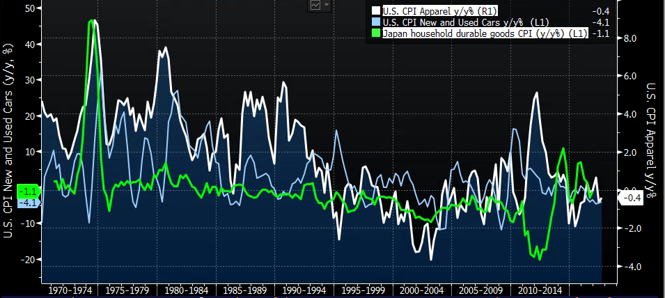 Figure 2: Japan Core Goods Inflation vs. the U.S.