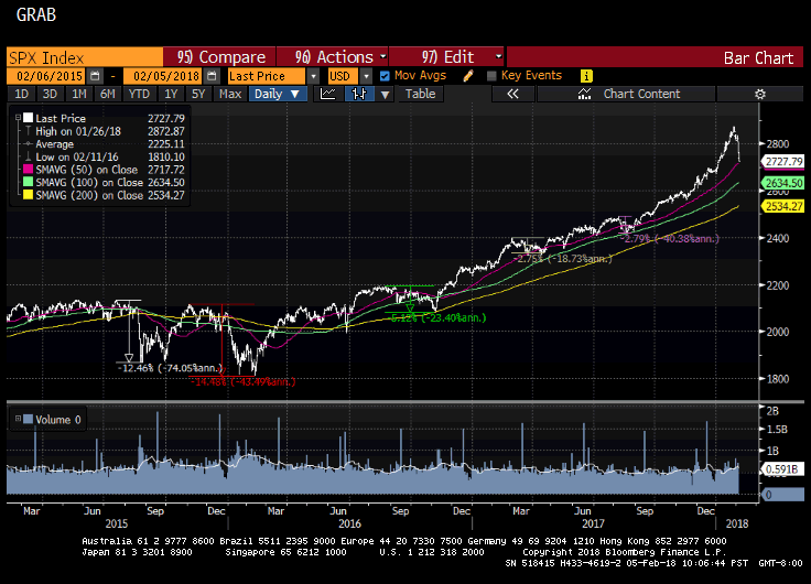 It’s been too long since we have had a correction, so one was due. We are off more than 5% from the recent high. A 5% correction is a must and needed event to take the speculators out. We typically get two corrections of this size per year. Interestingly, it has been over 400 days since we have had one. Good opportunities begin to present themselves upon these downlegs, but a 10% or more correction could clearly be in the cards given the extent of this previous move. That said, there is already quite a bit of consternation about this sell off and it did seem as though this was already feared. That usually bodes well for the depth and duration of an event.